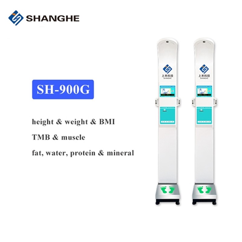 Доставка стиля веса тела и регуляция - 900G имеет красивый цвет дисплей 10,1 дюймов, новый привлекательный ультразвуковой метр высоты. Оно печатает билет который включает вес, высоту, BMI, жирный, мышцу, имя фармации,